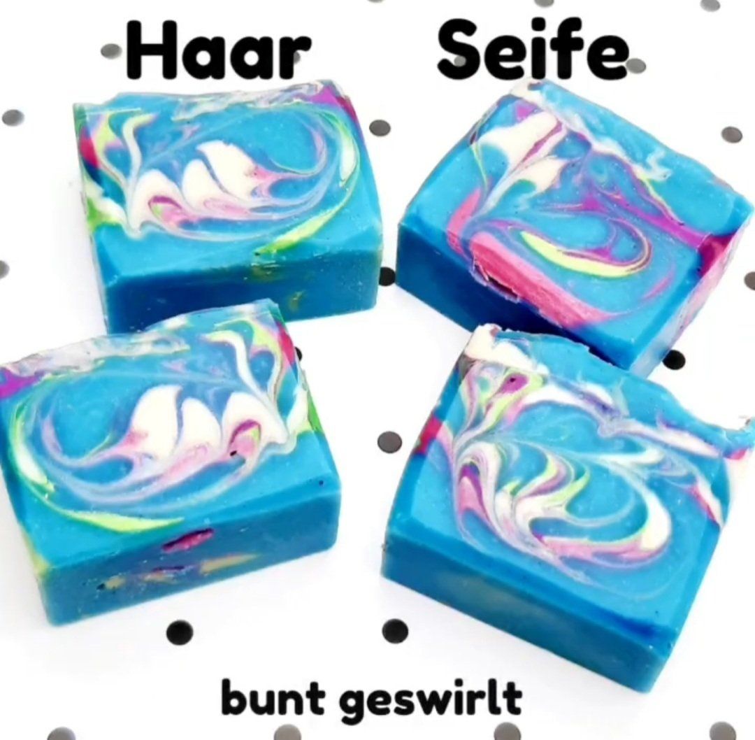 Du weißt ja, Haarseifen brauchen keine Plastikverpackung und verschönern Dein Badezimmer. Egal ob schlicht, edel oder bunt geswirlt, Deiner Kreativität sind kaum Grenzen gesetzt. Und das schönste, Deine selbst gesiedete Haarseife zaubert nicht nur Dir ein Lächeln ins Gesicht.