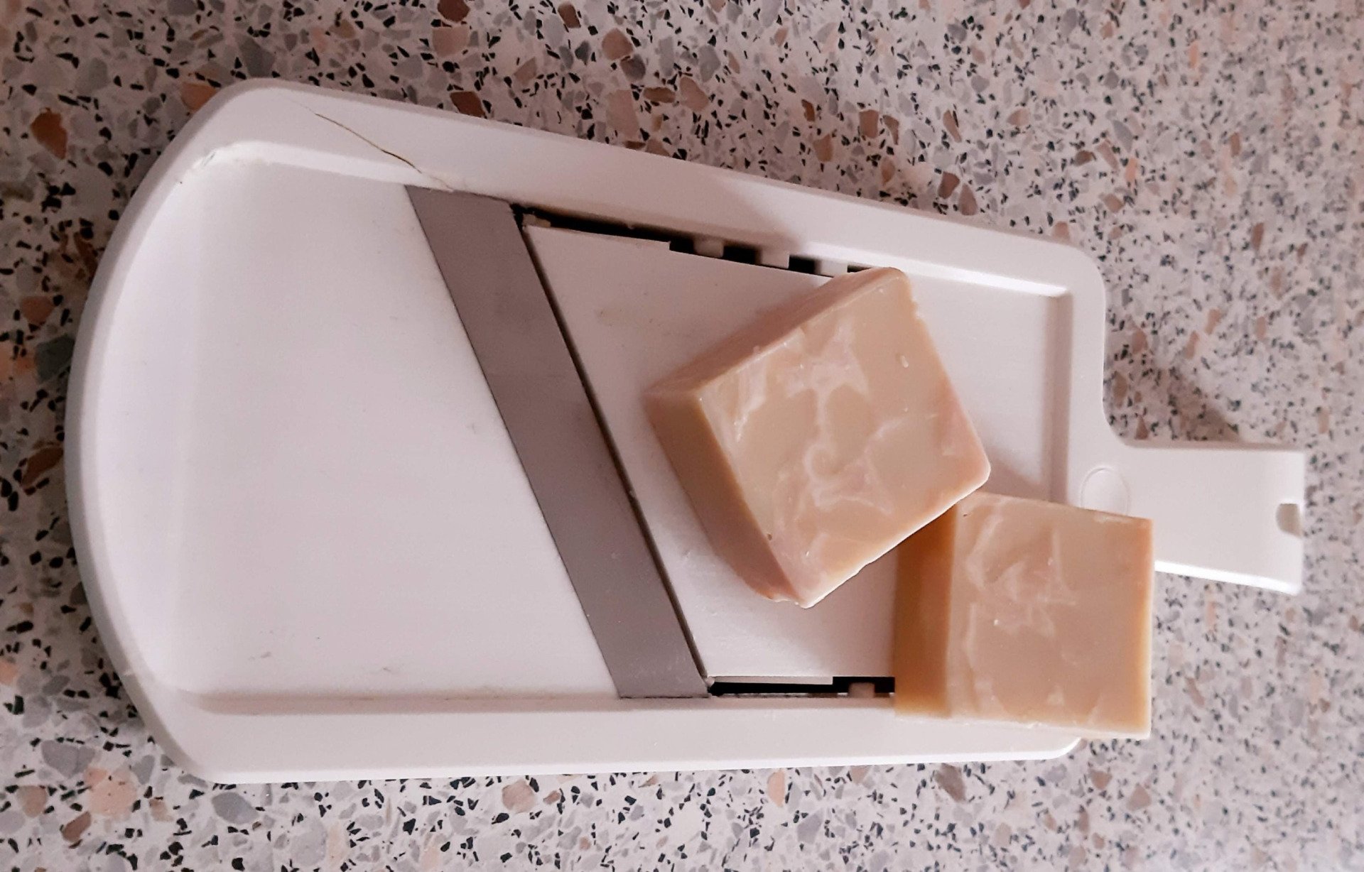 Natürlich, wer einen Gurkenhobel hat, kann damit wunderbar seine Seifen glatthobeln.
