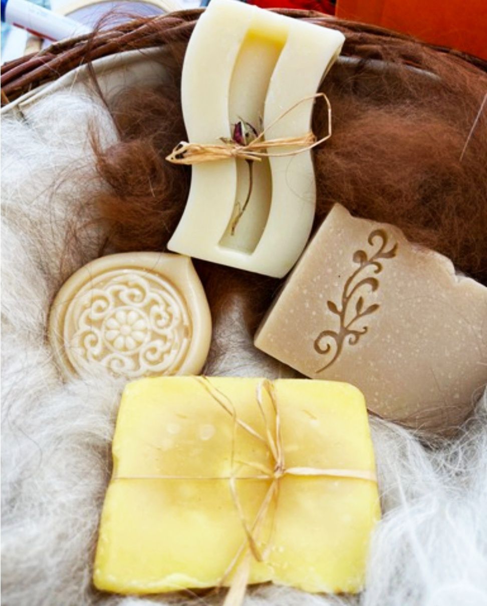 Du siedest, aus schmusig weicher Lamafaser und rein pflanzlichen Fetten und Ölen Deine eigenen, festen Seifenstücke