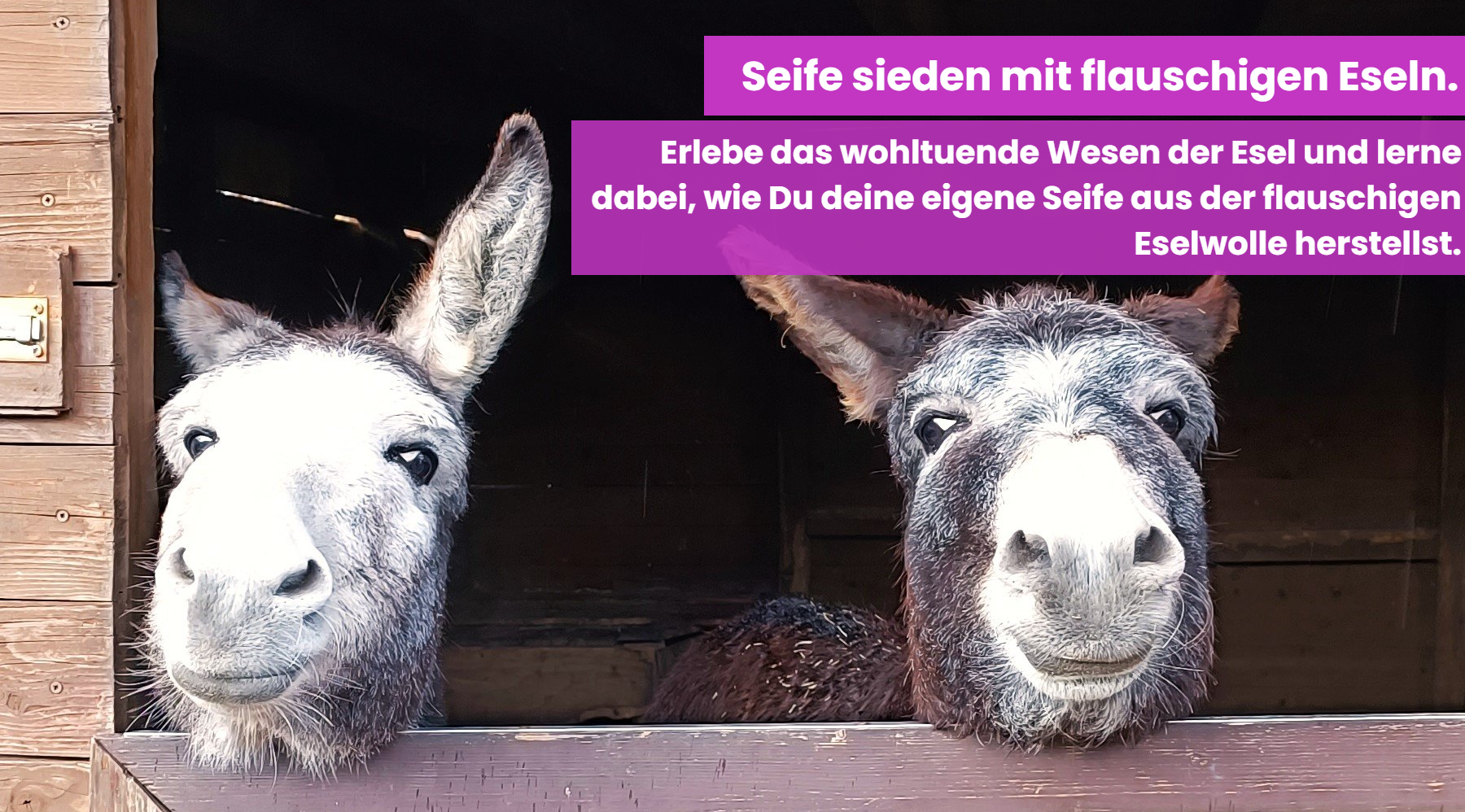 Gönne Dir jetzt Deinen Tag der Entschleunigung bei den flauschigen Eseln und lerne - gemeinsam mit lieben anderen Menschen - wie Du Deine eigene natürliche Seife siedest.